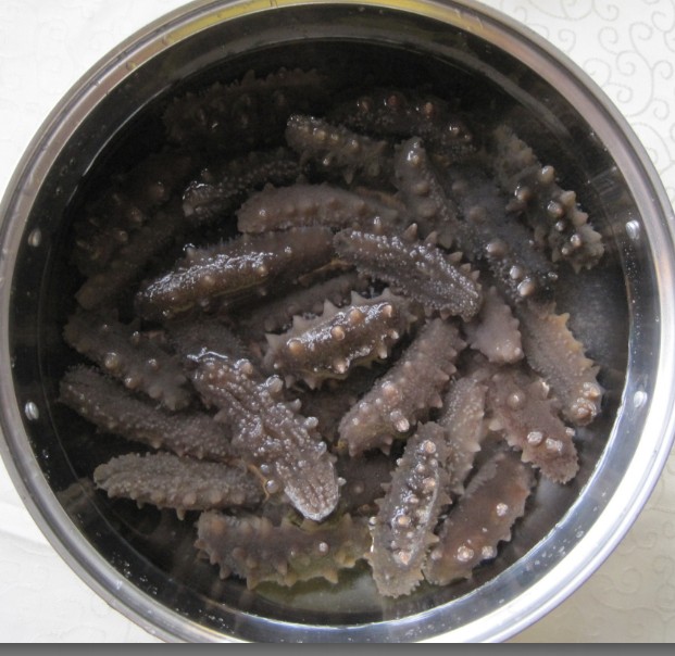 第二种:将海参放入盛有开水的暖壶中焖12小时,取出开肚去牙再浸泡一天即可食用。